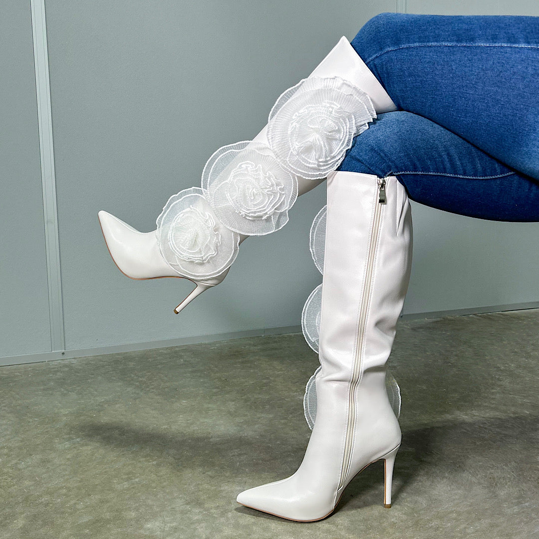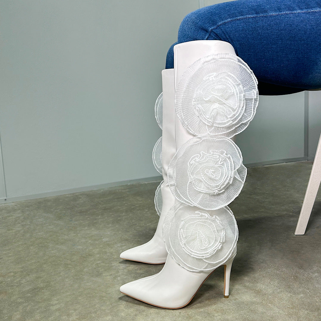 Kara In White showcases refined elegance with its under-the-knee silhouette and distinctive three-flower embellishment adorning the side. Crafted for the discerning wearer, this boot combines timeless design with subtle botanical detailing that elevates any ensemble. The structured fit provides confident support, while the thoughtful floral accent adds a touch of sophistication without compromising versatility. Perfect for those seeking a premium boot that balances classic appeal with understated artistry.