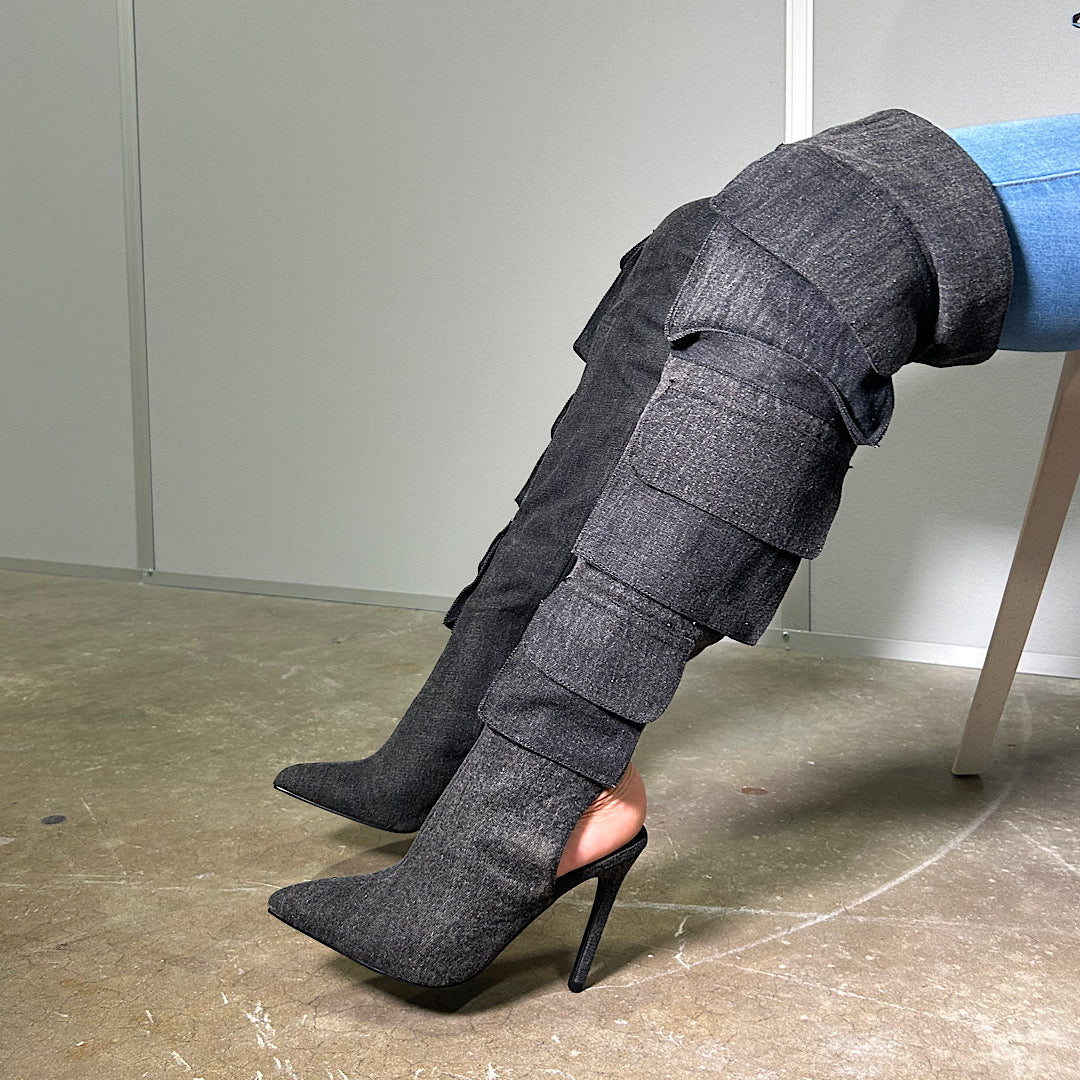The Tia In Charcoal combines sophisticated style with practical functionality. These over-the-knee boots feature a sleek charcoal finish that pairs effortlessly with any wardrobe. Three strategically placed pockets provide convenient storage without compromising the streamlined silhouette. Crafted for the discerning wearer, these boots deliver both elegance and everyday utility, making them an essential addition to your footwear collection.